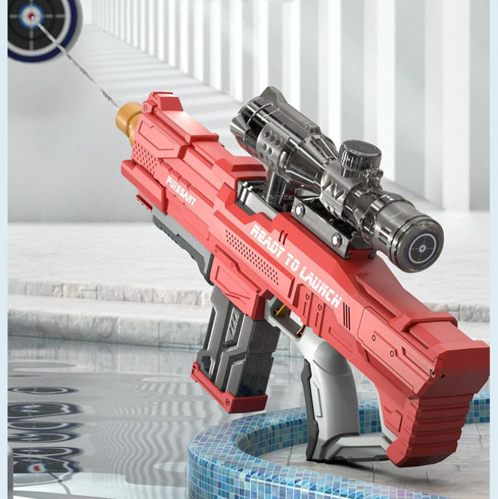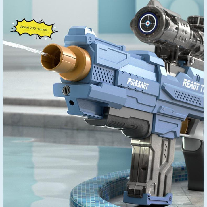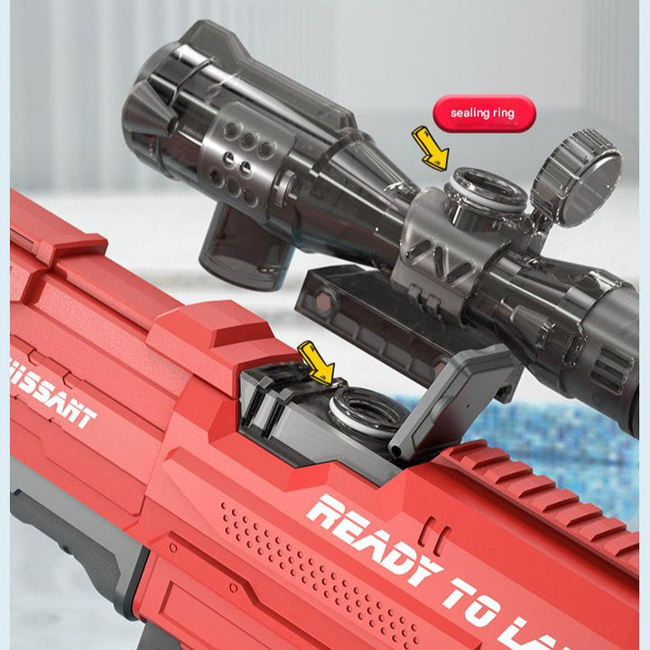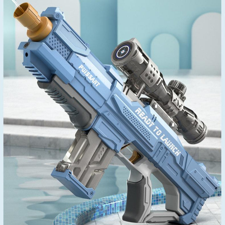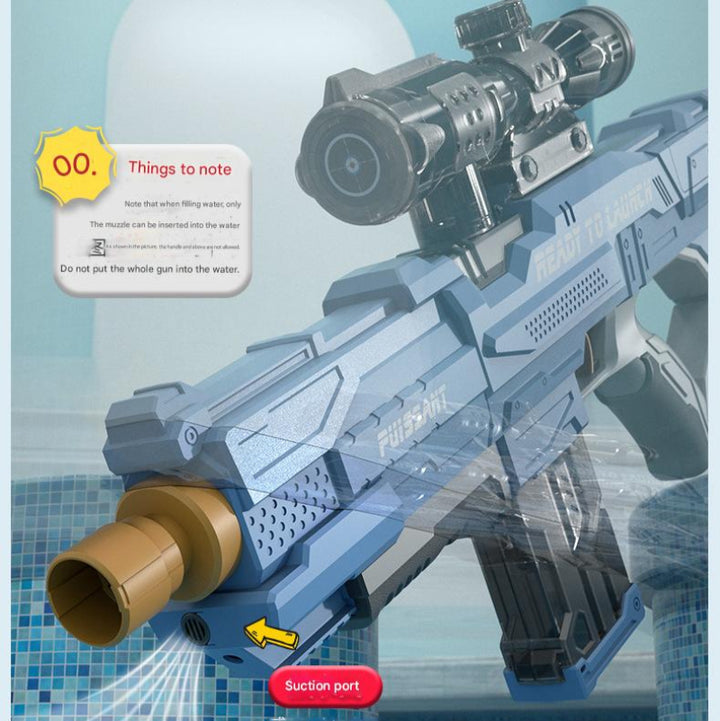 Get ready for an epic water battle with our Electric Water Gun Rifle! Featuring a cool design and powerful range, this blaster lets you stand out in any summer showdown. Customize it with an optional scope or soda bottle to expand water capacity and add extra fun. For best performance, fill the tank up to 80% to increase pressure and shoot farther with stronger blasts. Perfect for the pool, beach, backyard, and more – great fun for kids and adults alike. Join the action now and enjoy nonstop soaking excitement!