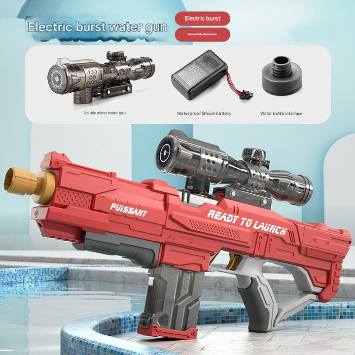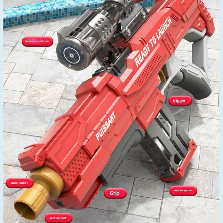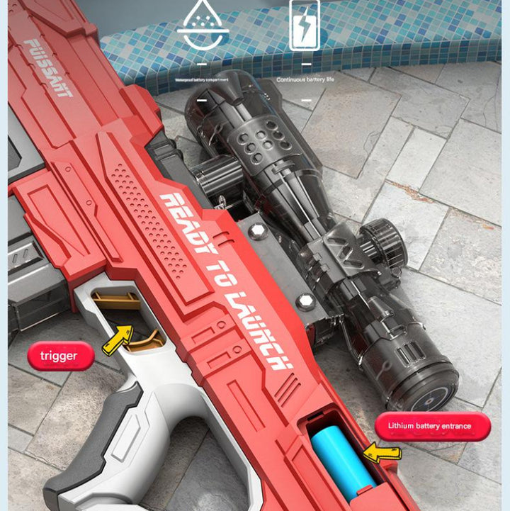Automatic Rapid Fire: Powered by an electric motor, this Water Gun Rifle enables continuous firing with zero manual effort—just pull the trigger and soak your target.