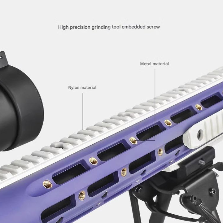 Alloy Folding Bipod: The adjustable bipod enables flexible shooting positions, making it ideal for prone, crouched, or standing fire. Whether you’re behind cover or lying in wait, this feature makes it one of the most versatile MSR Nerf Sniper Rifle options available.